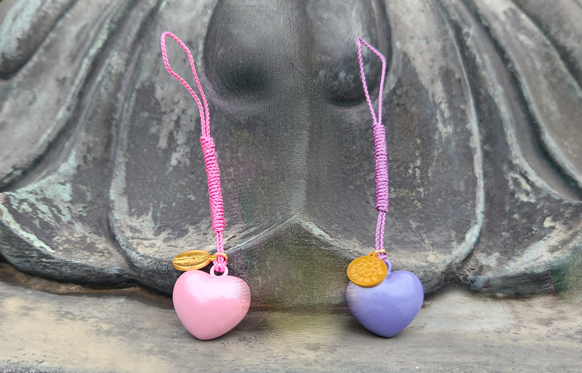 赤い宝珠・ハートは心を表し、人と人との善い縁が繋がっていくことを願うお守りです。